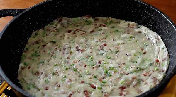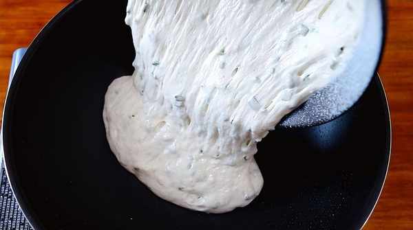 4、 發酵好瞭之後,將不粘鍋噴入一些油,然後將面糊糊倒入鍋中;