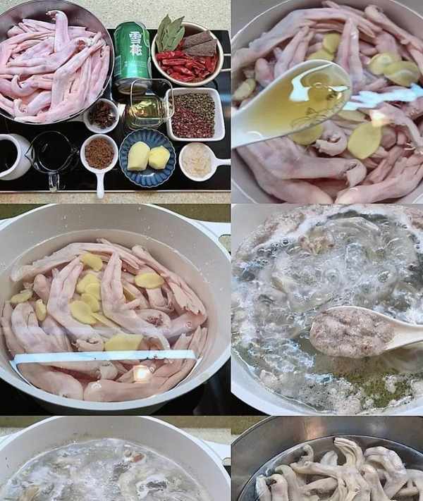 1?鴨掌洗幹凈,冷水下鍋中,加入3勺料酒,