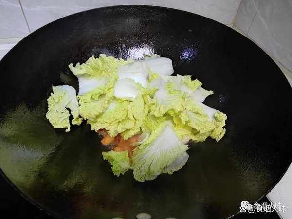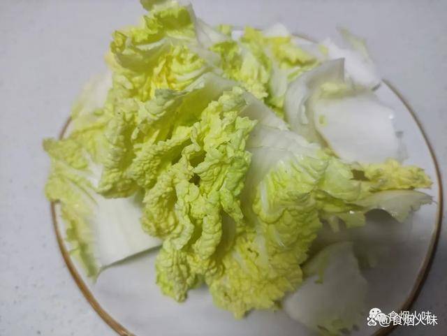 2.大白菜今天選用的是娃娃菜,把它折成一葉葉,放在盆裡面,加入適量的食鹽,浸泡20分鐘。娃娃菜的口感清甜而且是一整顆包裹的,清洗的時候要用鹽水浸泡,可以更好地菌,消毒,泡後的娃娃菜甩掉表面的水分,然後切成小段放在一旁;