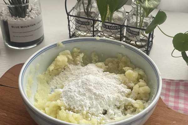 2、用壓泥的工具把土豆壓成土豆泥,也可以用搟面杖或者叉子壓泥,自己覺得順手就行。