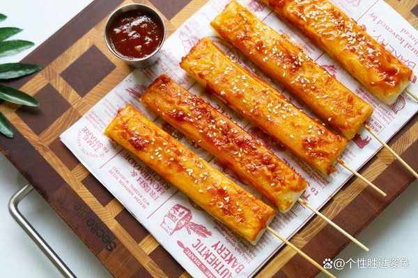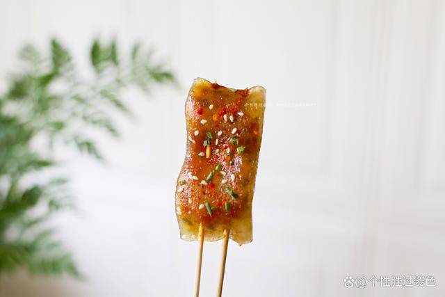 5.出鍋後的年糕刷上醬料就可以吃瞭,也可以根據自己的口味撒孜然粉、辣椒粉