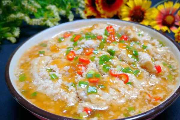 食材:蓮藕、豬肉、蔥花、薑末、小米椒、鹽、糖、醬油、蠔油、香油、清水、淀粉。