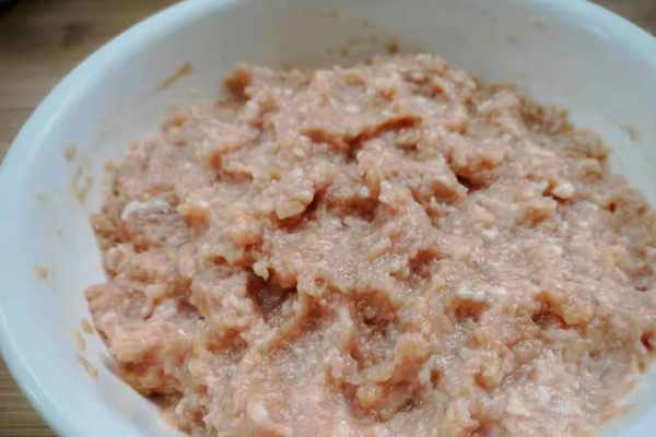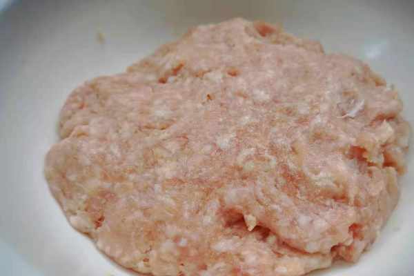 1、豬肉洗凈用用刀剁成肉餡兒,也可以用料理機打成肉餡,豬肉選擇肥瘦相間,口感比較好。