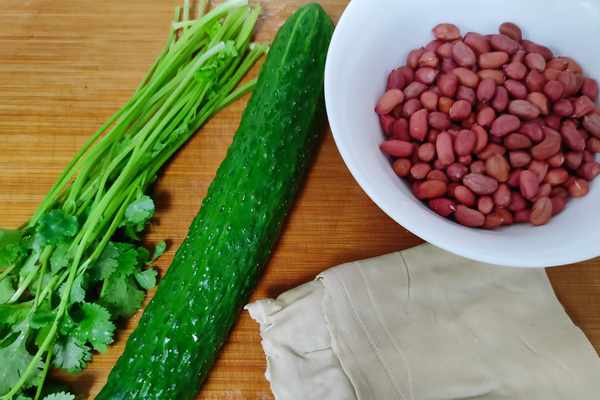 1、準備好:黃瓜、豆片、花生米、香菜。洗凈備用。