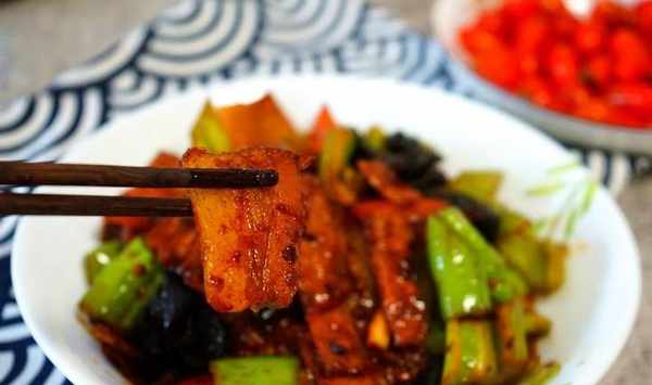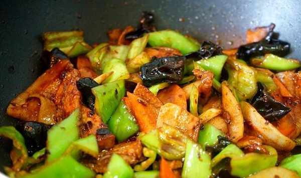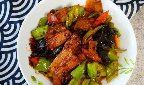 有陣子沒吃回鍋肉瞭,肥瘦相間的肉片,點綴上嫩綠尖椒、橙色胡蘿卜片、脆口的黑木耳,色彩多樣,更能去除油膩。