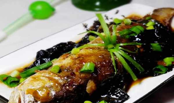 2、將適量花生油倒入鍋內,燒熱,入蔥段熗鍋,放入黃花魚,兩面稍煎,烹入醋,加適量高湯和精鹽,再加入發好的木耳,一同燒至魚熟,加入味精、香菜調味即可食用。
