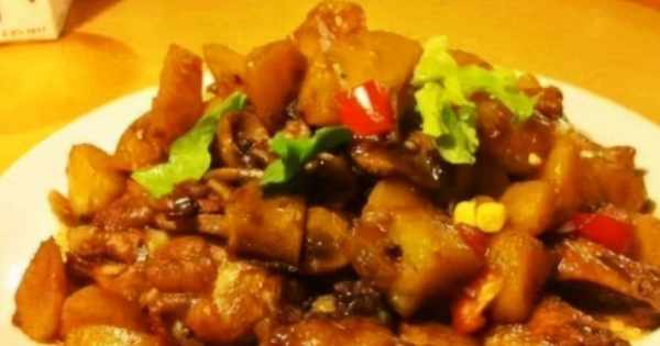 食材:山藥300g、香菇8朵、裡脊肉200g、青椒1個、油、蔥、鹽、白糖、料酒、生抽、淀粉、雞精、香油、薑。