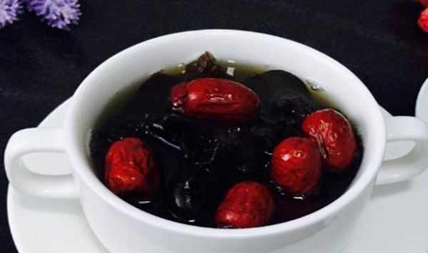 2、加適量水,煮沸,改小火煨至木耳和棗熟爛,加入紅糖,煮沸,離火即可食用。