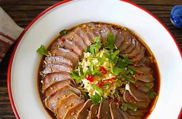 【食材】豬口條2個、花椒1小撮、八角3個、香葉2片、桂皮1片、蒜蓉8克、白芝麻少許、鹽適量、香菜1棵、醋適量