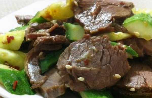 材料:牛肉、黃瓜、生薑、大蒜、辣椒、鹽、料酒、醬油、生抽。