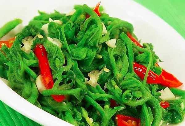 做法:1、南瓜尖用鹽水浸泡15分鐘後洗凈。