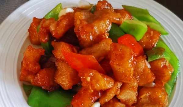 材料:豬裡脊、青紅椒、精鹽、醬油、蠔油、料酒、白醋、白糖、玉米淀粉、土豆淀粉。