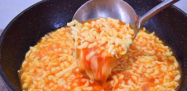 4、加水後,再加少許生抽,少許精鹽,雞精,味精調色調味,接著水開後,轉中小火,把疙瘩撒入鍋內,邊撒邊攪拌,下完疙瘩後,將剩餘的蛋液淋在鍋內,水開後再煮上30秒,就可以出鍋啦。