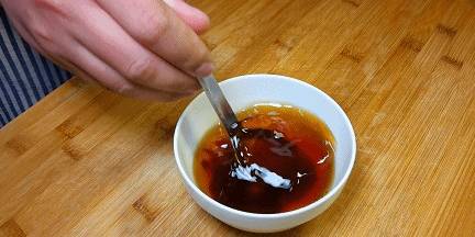 5.準備一個調料汁,碗中加入1克白糖、2克食鹽、3克料酒、3克蠔油、5克生抽,把調料攪拌化開後備用。