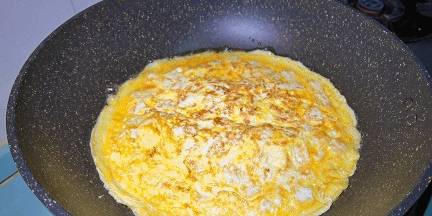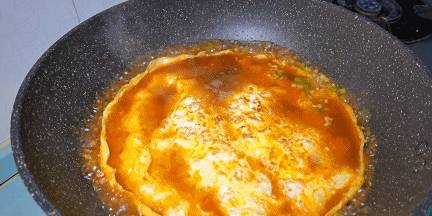 7.待底部的雞蛋定型後翻一個面,另外一面再煎1分鐘,直至兩面焦黃定型後盛出。