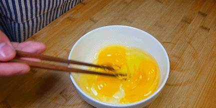 1.碗中打入三到四個雞蛋,用筷子把雞蛋充分攪散。