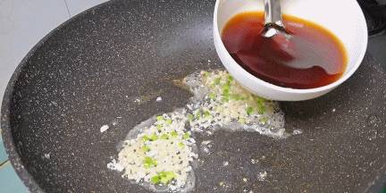 8.用鍋內底油下入蔥蒜爆香,再淋入準備好的調料汁煮開。