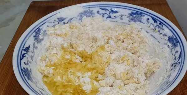 攪拌成面絮狀,倒入30克玉米油,揉成一個面團。