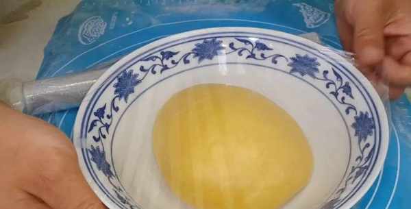 裹上一次性保鮮膜,放入室內,發酵至兩倍大小。