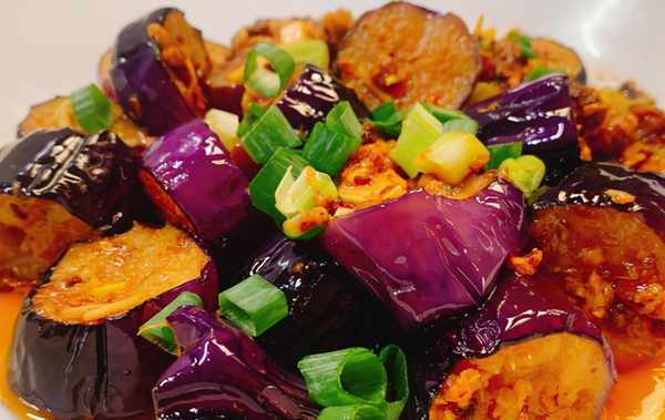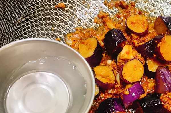 1、茄子切塊後,少許油過油,保持色澤,倒出瀝幹。