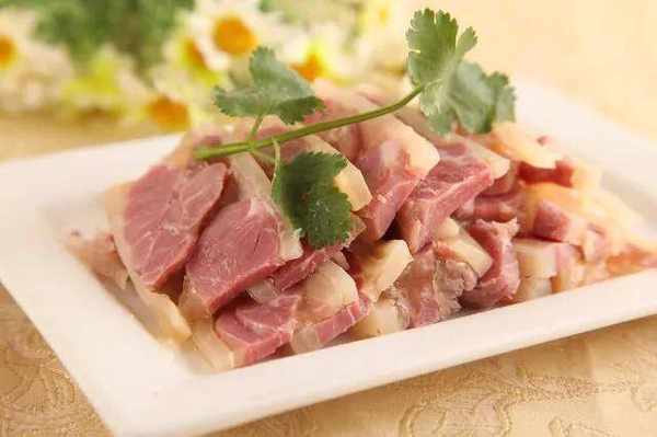 水晶肴肉又名水晶肴蹄、鎮江肴肉,是江蘇省鎮江市的一種傳統特色名菜,屬於蘇菜系。該菜品成菜後肉紅皮白,光滑晶瑩,鹵凍透明,猶如水晶,故有“水晶”之美稱。食用時,具有瘦肉香酥、肥肉不膩、酥香嫩鮮等特點,佐以薑絲和鎮江香醋,更是別有一番風味。