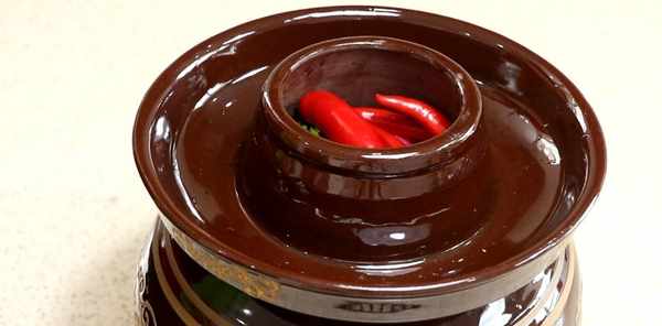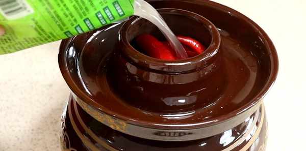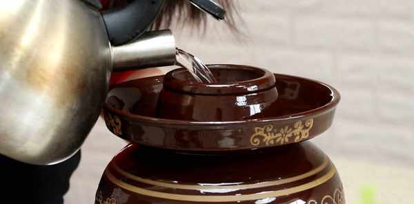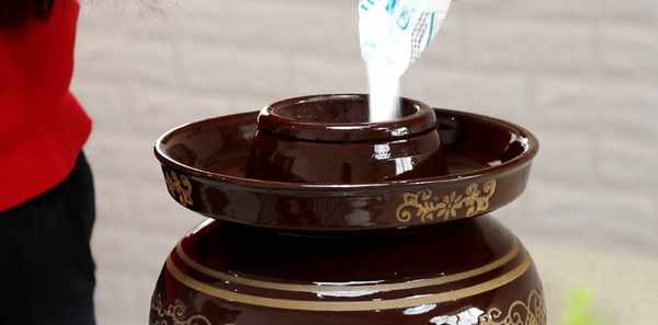中途需要給泡菜壇子周邊的水換一換。
