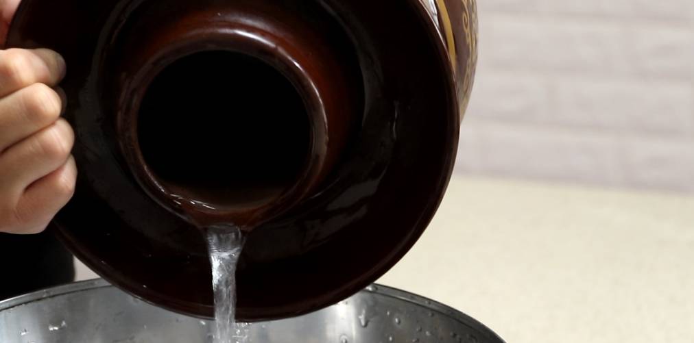 先用沸水燙一下泡菜壇子,然後倒掉裡面的水,這樣可以起到殺菌的效果。