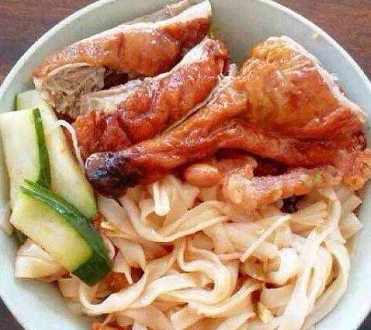 燒鴨粉是燒鴨與米粉碰撞出美食的火花而形成的一道百色經典米粉小吃。米粉焯水過後撈出,加入秘制燒鴨汁拌勻,再放上燒鴨肉,味道美極瞭。