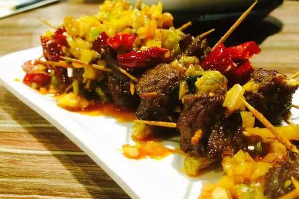 牛肉炸彈是到瞭百色必嘗的地方美食之一,一定要體驗一下被辣哭的感覺,百色人戲稱這種感覺就是失戀的感覺。其實牛肉炸彈就是一片薄牛肉包裹著小尖椒,初嘗時辣得不明顯,但這種辣會在味蕾慢慢發酵而後感覺越來越辣,辣的你隻想流眼淚。