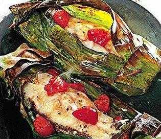 把烤好的魚用新鮮的蕉葉包起來,是百色菜的特色做法。帶著清香的芭蕉葉包裹著用黃薑、香葉、香茅等十幾種香料醃制而成的魚,再用慢火烤炙出別樣風情,口感香辣,滿口留香。