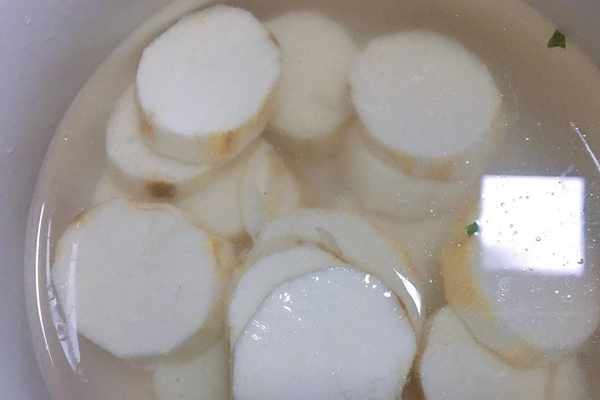 4、如果不馬上使用的話,一定要放在水中浸泡,要不然山藥因為氧化很容易變黑。