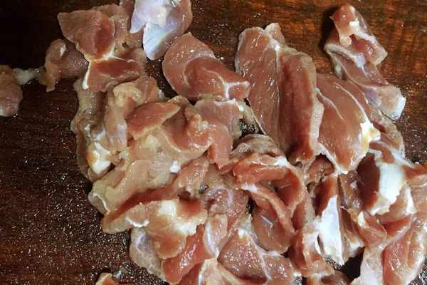 3、趁著醃肉的時間,就可以把山藥去皮洗凈,再切成大小差不多的塊狀。