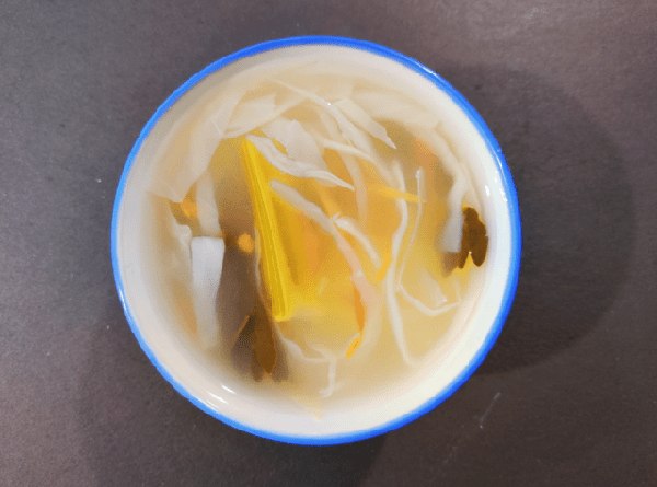 “漿水”本是大西北地區餐桌上的一道傢常特色,它的制作原材料其實並不固定,用的多是當地時令蔬菜。芹菜呀,蓮花菜乃至蘿卜纓呀,統統可以在沸水中燙過後,拌入少量面粉,加溫水酵制而成。成品漿水多呈半透明,淡白的顏色配上微酸的口感,挺消暑,也挺解渴。當然也可以拿來熗鍋煮漿水面。