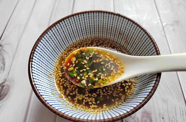配料:香蔥10克;熟芝麻3克;白糖3克;鹽1克;辣椒醬1勺;米醋1勺;蠔油1勺;生抽兩勺;鹽1克;花生油20克。