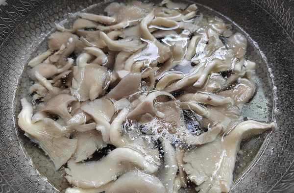 第四步:燒小半鍋開水,放入平菇,大火煮至變軟,撈出控幹水份裝盤。
