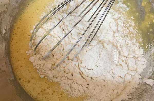 6、然後篩入低筋面粉攪拌均勻,手法要註意以免起筋