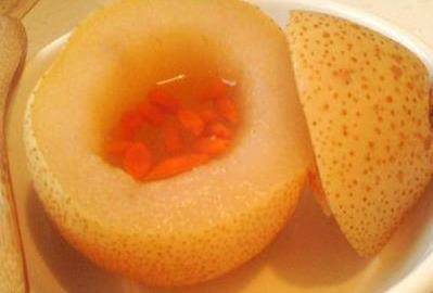 3、把梨子放入碗中,入蒸鍋蒸30分鐘左右;