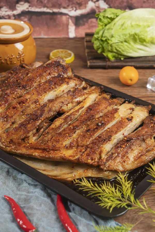 兩面焦黃出鍋,香酥油潤,趁熱撒上孜然裝盤,即可開吃~