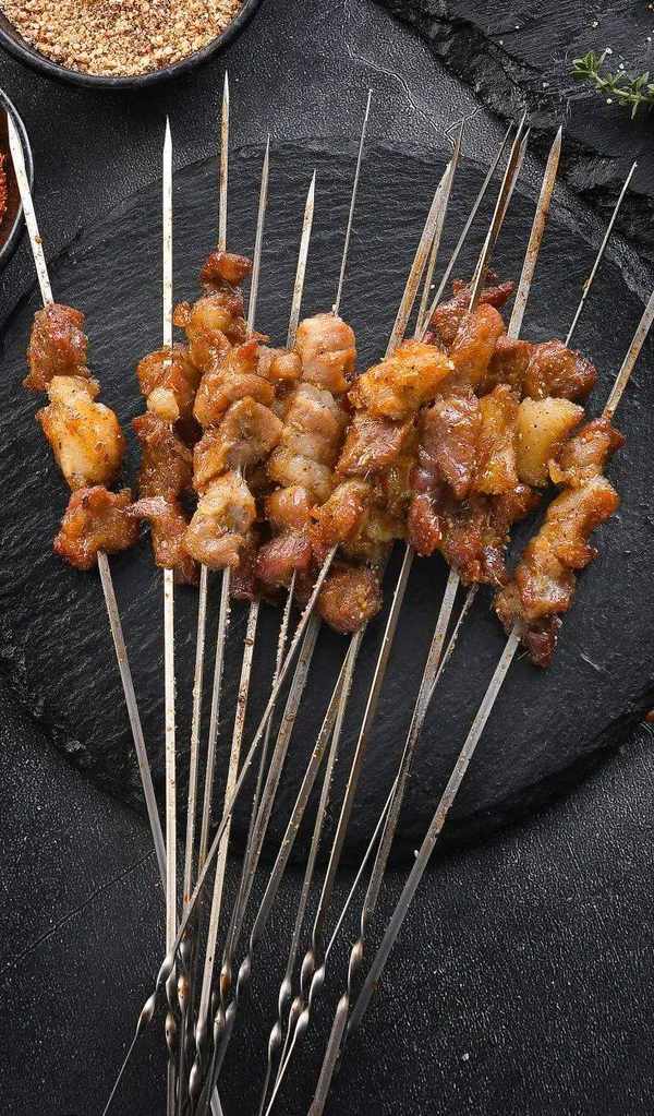 羊肉串,是燒烤的重頭戲。選擇肥美的後腿肉,鮮肉原切,純手工串制,拿到手解凍後就可以直接上鍋烤。