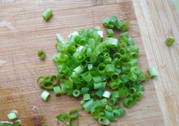 芹菜葉子摘好後清洗幹凈,然後切成小丁