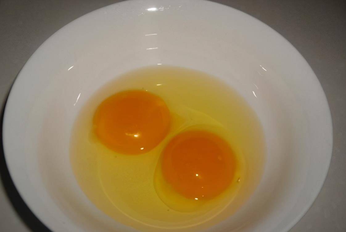 第二步:碗中打入2個土雞蛋,加少許料酒去除蛋腥味,用筷子攪拌均勻備用