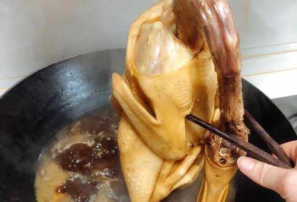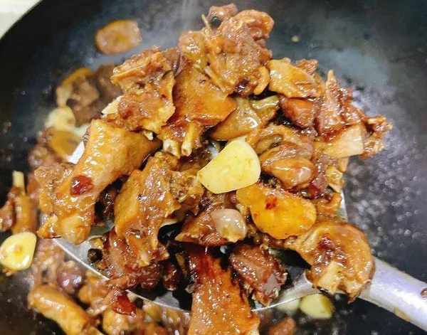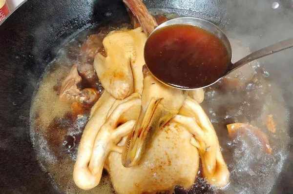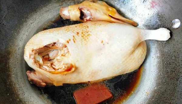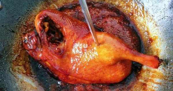 在燜的過程中,要經常翻動鴨身,在給鴨子翻身的時候要把鴨子肚子裡的醬汁先瀝幹再翻身燜,這樣燜出來的鴨子連骨頭都是又濃又醇的陳皮和醬香味道;