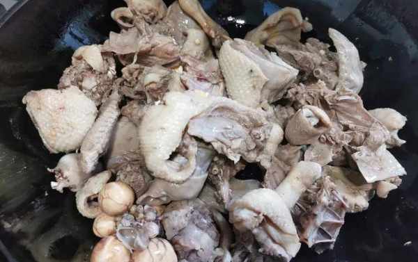 鴨肉讓賣傢斬塊,盡量斬均勻點,因為鴨子縮水比較厲害,所以別斬太小塊;