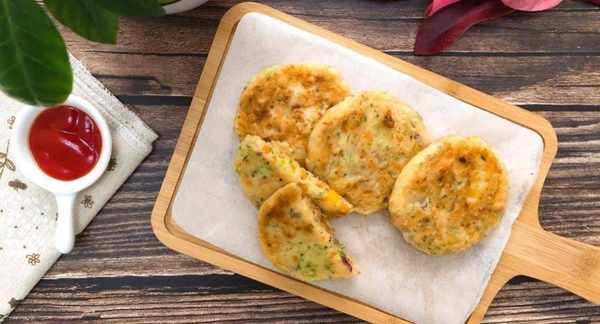 早上做這款鮮蝦土豆餅當早餐吃,營養太全面瞭,因為加瞭很多蔬菜,可以補充多種營養成分,提高免疫力,多做給孩子吃,個頭飛快長。