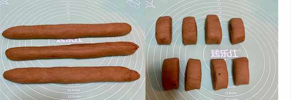把發酵好的面團揉一揉排氣後,搓成長條,切成小劑子。