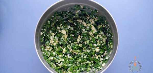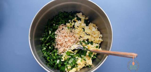 6放先油攪勻,再放鹽調味。可以防止韭菜出水。入鍋前活餡,也可以防止韭菜出水。