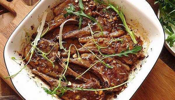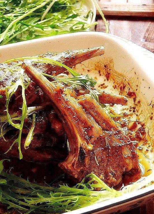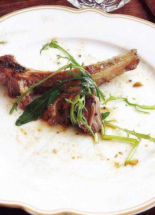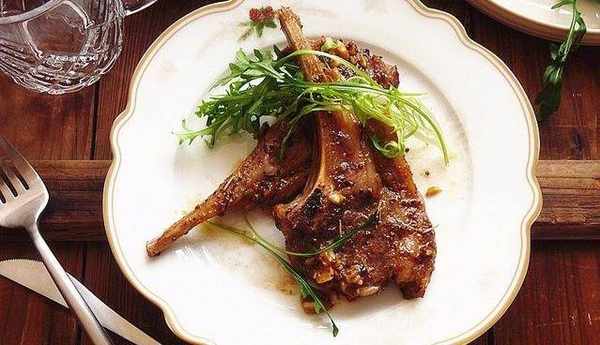 【材料】羊排6件,蒜頭20克,苦菊30克,芝麻菜30克,橄欖油4大匙,蜂蜜1匙