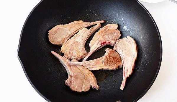 用鍋燒熱1匙左右的橄欖油,把羊排兩面煎至金黃