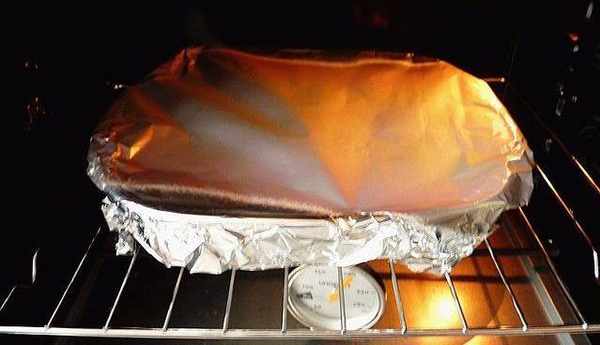 把烤盤封上錫紙,放在200度的烤箱裡