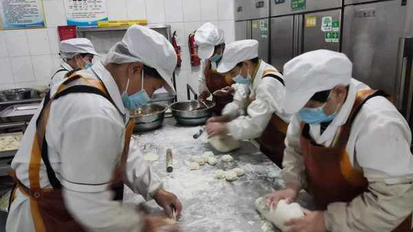 學生們正是長身體的時候,精力旺盛,青春洋溢,為瞭給學生補充充足的營養,廚師們必須在有限的時間裡做出保質保量的飯菜,還要在學生來前把飯菜分好上桌。就像劉大廚說的那樣,他們是在“搶時間”。食以廚為先,廚以藝為要,想在緊迫的時間裡做出好吃的飯菜,劉大廚需要集中全部精力,一天下來,那雙掌勺的手幾乎酸痛得抬不起來,而這也是食堂所有廚師們的日常。從凌晨忙到傍晚,隻有中午吃飯的半個小時可以歇口氣,對於頭發花白的員工們來說,這絕非易事。“誰傢裡都有孩子,就像給自己孩子做飯一樣。”趙大廚說道,“其實比在傢裡炒菜更上心。”既要日復一日保證菜品質量,又要不斷精進廚藝水平,聞著油煙,泡著冷水,但是看到師生們吃得高興,大廚們卻紛紛表示:“一切都很值得。”